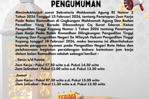 PN Rote Ndao-Humas: Pada hari Rabu, 18 Februari 2026, bertempat di Lobby Pengadilan Negeri Rote Ndao diadakan kegiatan doa bersama, program semangat pagi, kegiatan briefing PTSP, Kepaniteraan dan Kesekretariatan yang dipimpin oleh Ketua Pengadilan Negeri Rote Ndao, Ibu Fransiska Dari Paula Nino, S.H., M.H. dan diikuti oleh Para Hakim, Panitera,…