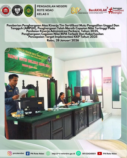 Pemberian penghargaan ini merupakan wujud nyata komitmen Pengadilan Negeri Rote Ndao untuk terus meningkatkan profesionalitas, memperkuat integritas, dan memberikan pelayanan hukum yang lebih baik kepada masyarakat.